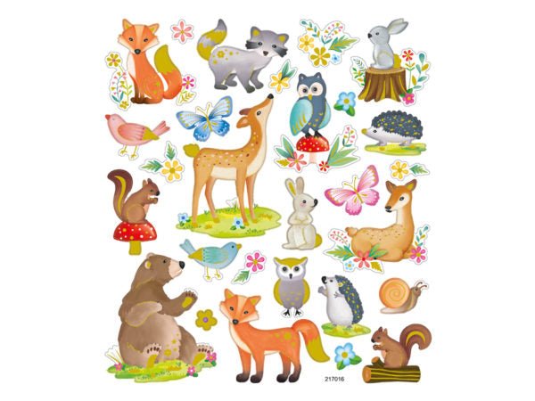 Brett med stickers, Skogsdyr. Glimrende til dekorasjoner, kort , album etc.