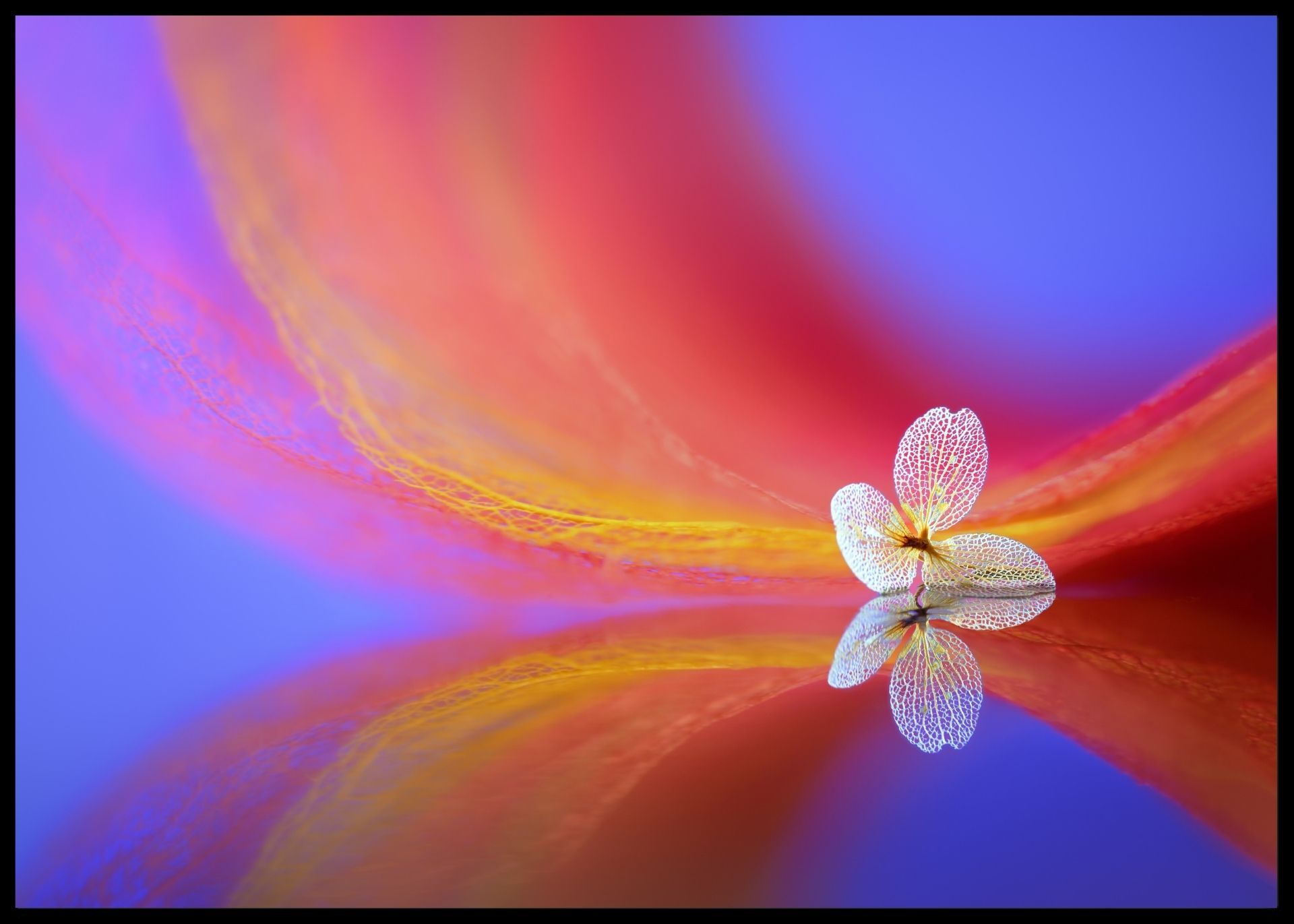 Plakat av dekorativ blomst med farger og linjer, nesten en abstrakt form