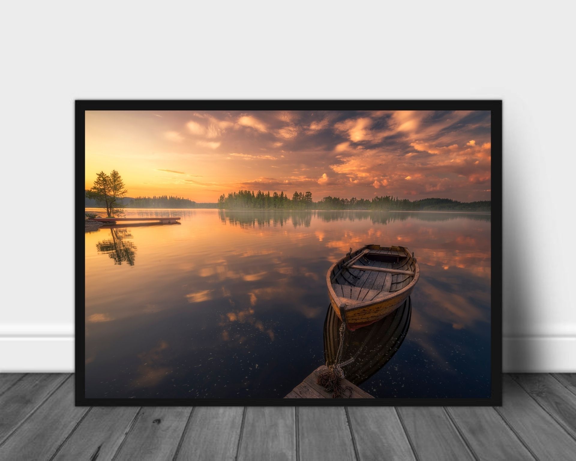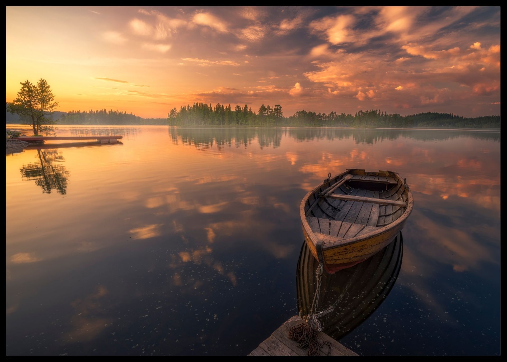 Plakat av et nydelig kveldsbilde fra en norsk innsjø