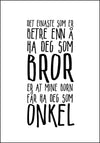 Personlig tekst blir satt pris på - "Det einaste som er betre enn å ha deg som BROR er at mine born får ha deg som ONKEL".