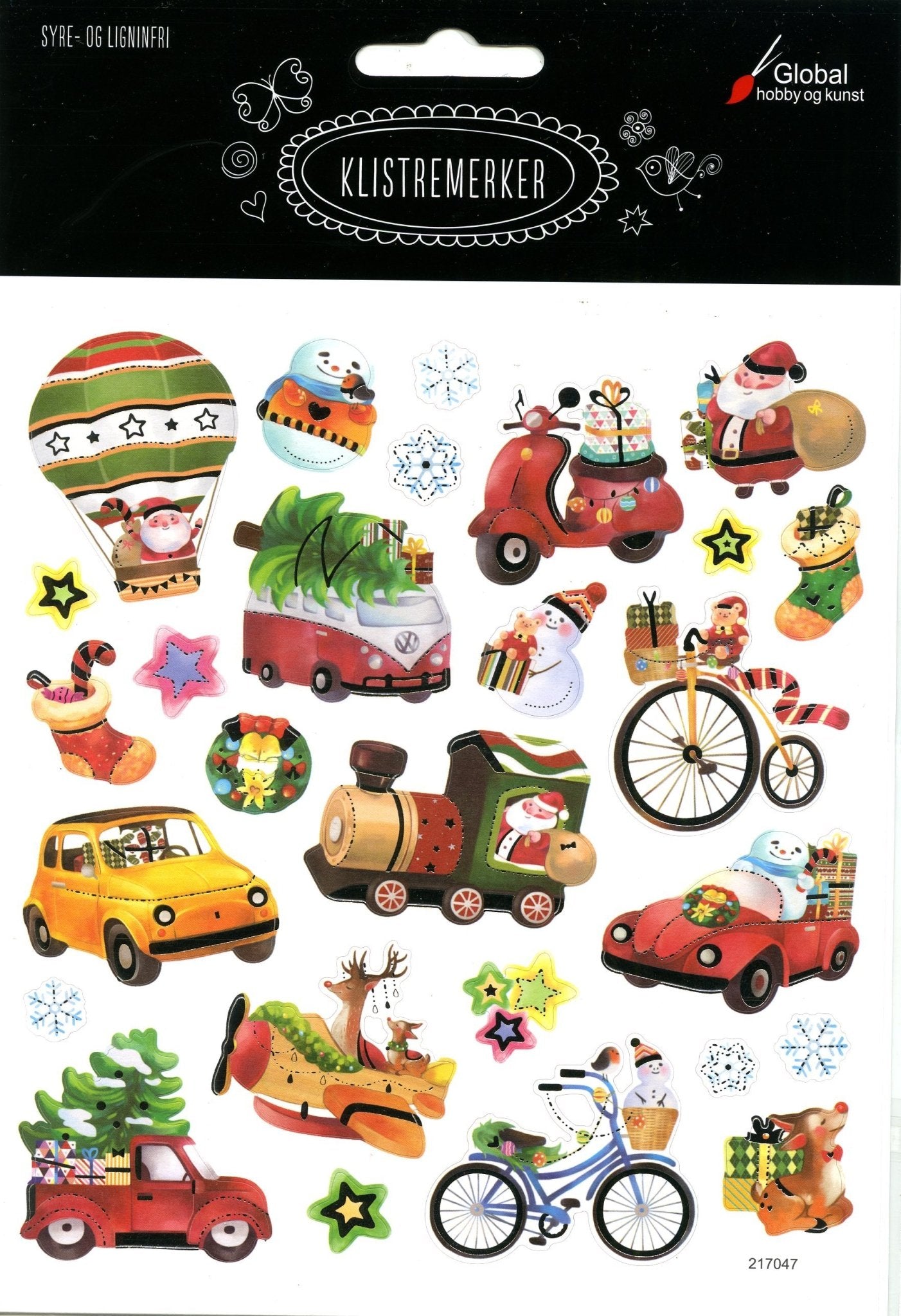 Brett med ca 25stk julefigurer stickers (40000463). Flott til å dekorere pakker, julekort og merkelapper med.