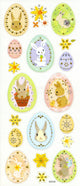 Brett med stickers, Påskeharer med glitter. Glimrende til dekorasjoner, kort , album etc.