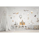 Nyhet! Kjempeflotte stickers som pynter opp og dekorerer ethvert barnerom. Leveres i en rpakke som er 30x40cm. To sider. Stickersene er ferdig utskåret og monteres lett på veggen.