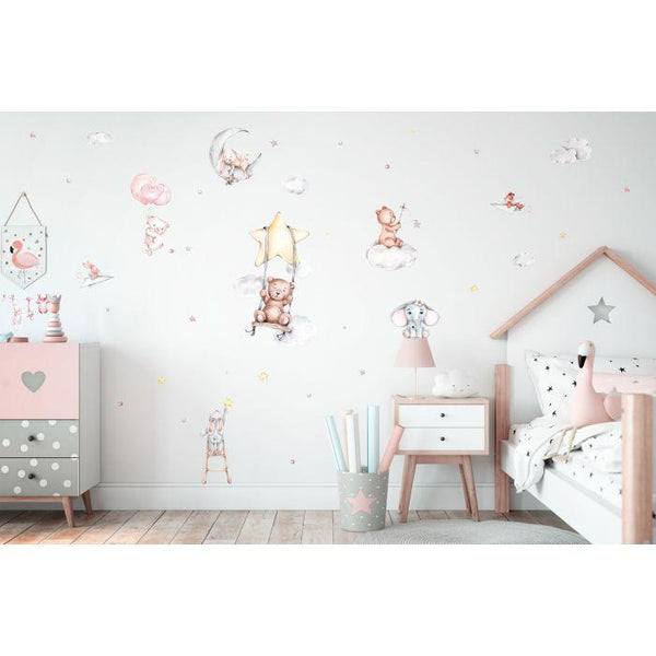 Nyhet! Kjempeflotte stickers som pynter opp og dekorerer ethvert barnerom. Leveres på en rull som er 111cm lang. Stickersene er ferdig utskåret og monteres lett på veggen.