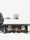 Et flott vintermotiv av en gammel hytte i skogen. Denne plakaten passer svært godt på en bildevegg sammen med våre andre vinterplakater.