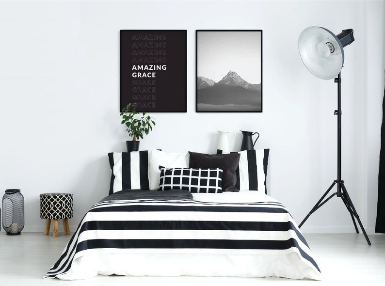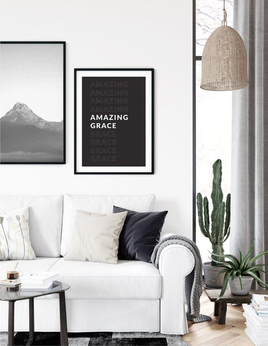 Amazing Grace. Veggkunst, typografisk plakat, sitattrykk minimalistisk moderne kristen veggdekor.