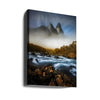 • Etter printing spennes lerretsduken på en kraftig blindramme. For de fleste formatene bruker vi en 40mm tykk ramme, slik at det oppnås en flott dybde-effekt når rammen henges på veggen. Deretter monterer vi på oppheng med stålvaier og kunstverket ditt kan henges rett på vegg.
