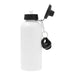 Flott vannflaske i hvit aluminium. To korker, skrukork og pop-topp (drikketut).