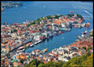 Flott oversiktsbilde over Bergen sentrum, tatt fra Fløyen