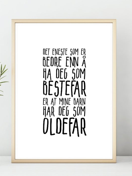 En søt og hyggelig familieplakat som gleder - "Det eneste som er bedre enn å ha deg som BESTEFAR er at mine barn har deg som OLDEFAR".