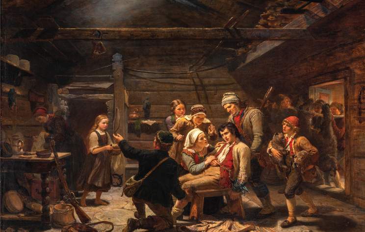 Adolph Tidemand skildret den enkle norske bondekulturen. Dette kjente maleriet er datert til 1862.