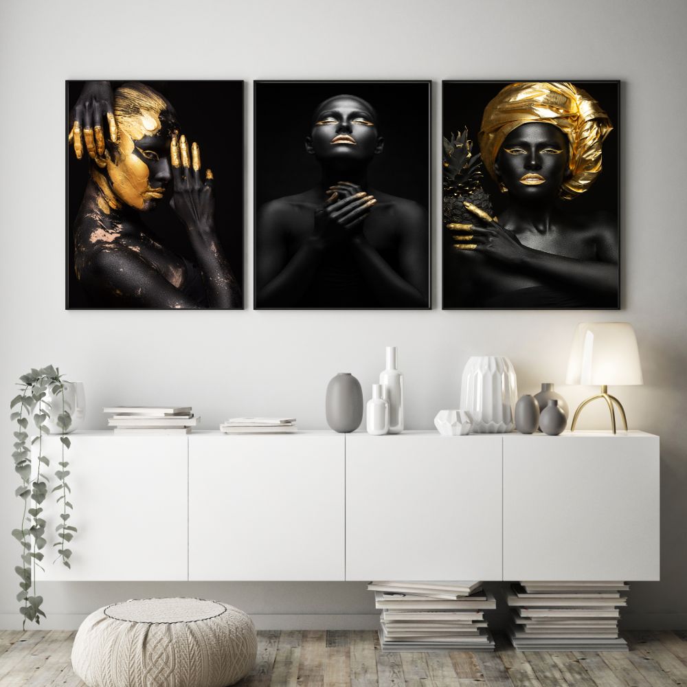 En nydelig bildevegg som er sammensatt av motiver fra den populære black and gold kategorien.  Her får du tre plakater.