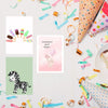 En pakke bursdagskort til barn med forskjellige motiver. Her ser du hvilke motiver som er i pakken.