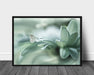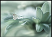 Plakat av et fantastisk motiv, med sommerfugl foran en vanndråpe på en grønn plante.