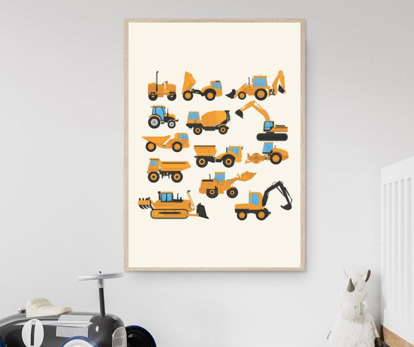 Mange gutter og jenter elsker traktorer, gravemaskiner og andre tunge kjøretøy. Vi har derfor laget flere postere av nettopp dette. Svært populært til barna!