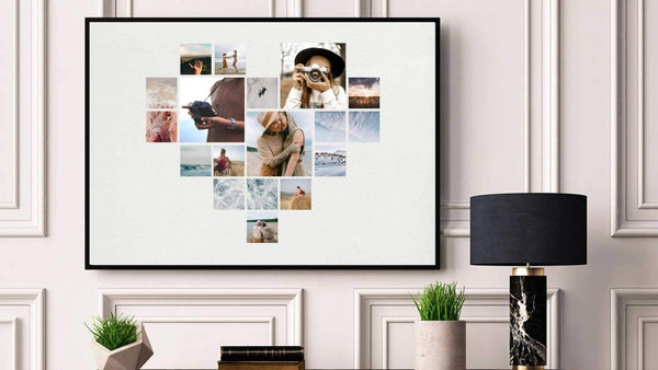 En superkoselig collageplakat formet som et hjerte. Du laster selv opp dine egne bilder. Her kan du laste opp favorittbildene dine fra en ferie, fra stunder sammen med en spesiell person eller hva du måtte ønske. Bare fantasien setter grenser for hvilke bildesamling du kan sette sammen.