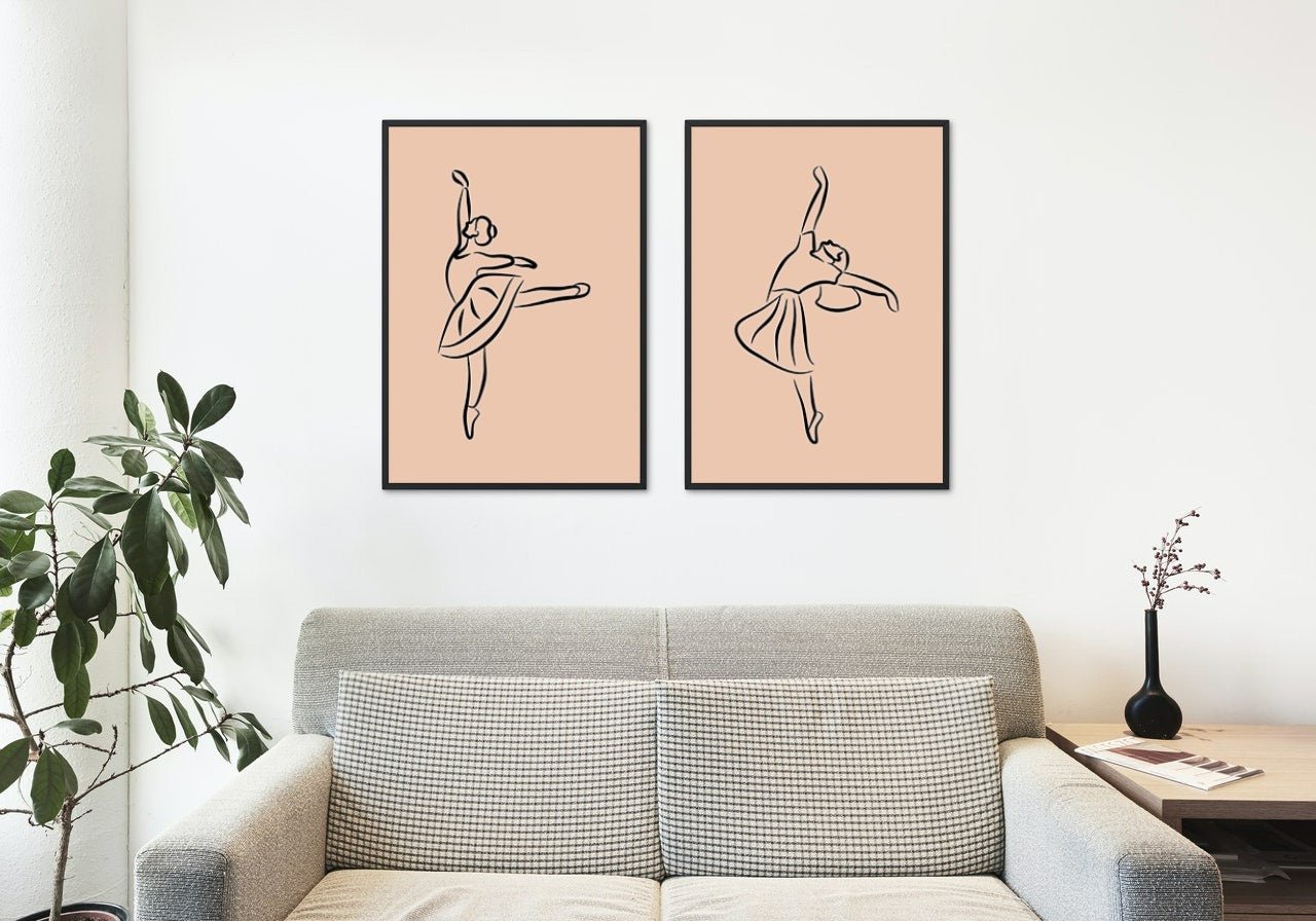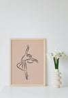 Abstrakt plakat av en dansende ballerina i fin farget bakgrunn.
