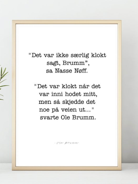 Det var ikke særlig klokt sagt. Sitat Plakat fra Ole Brumm