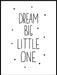 Søt barneplakat med teksten "dream big little one. Passer fint over barnesengen.