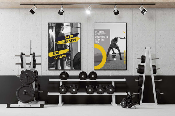 Plakatene våre til trening passer til treningssentre, på hjemmegymmet i kjelleren eller garasjen, eller for deg som driver med trening og fitness og vil style veggen med motivasjonsplakater innenfor trening.