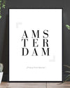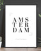 Stilren og tidløst plakatdesign med teksten "AMESTERDAM".