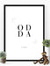 Stilren og tidløst plakatdesign med teksten "ODDA".