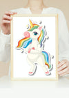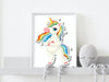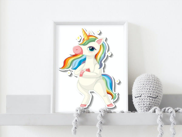 Plakat av enhjørning som danser. Fin å pynte veggen på rommet til ungene med. Kombiner gjerne med flere plakater og lag en bildevegg.