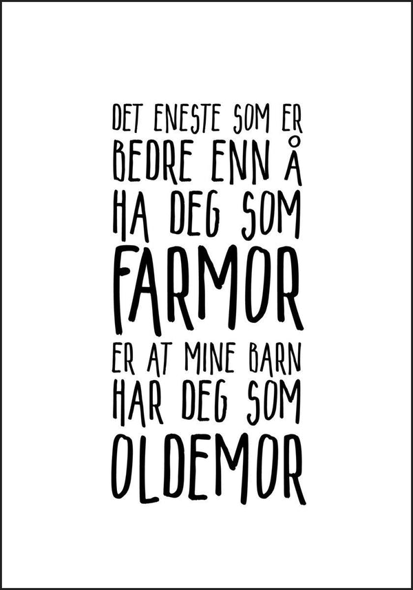 «Det eneste som er bedre enn å ha deg som FARMOR er at mine barn har deg som OLDEMOR».