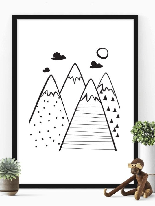 Søt plakat til barnerommet med illustrasjon av fjelltopper.