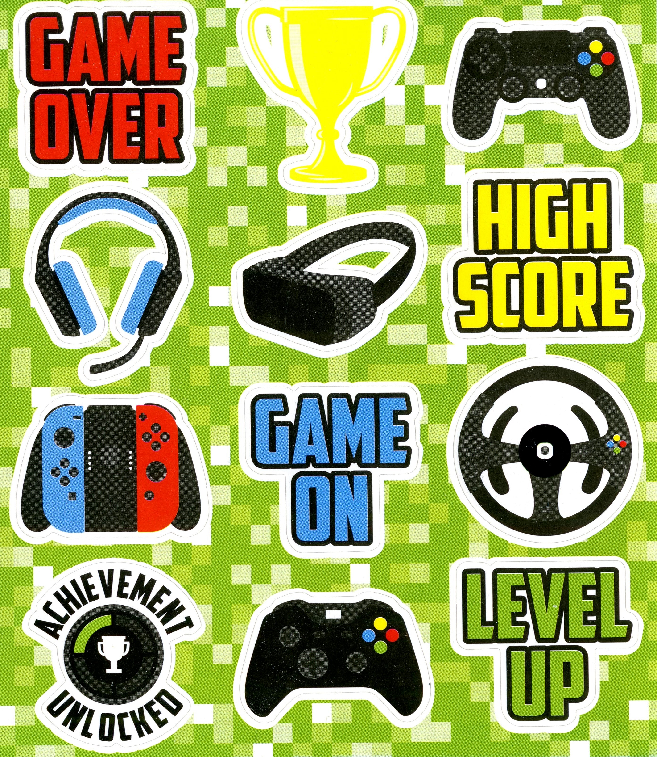 Brett med stickers, Gaming. Glimrende til dekorasjoner, kort , album etc.