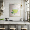 • Etter printing spennes lerretsduken på en kraftig blindramme. For de fleste formatene bruker vi en 40mm tykk ramme, slik at det oppnås en flott dybde-effekt når rammen henges på veggen. Deretter monterer vi på oppheng med stålvaier og kunstverket ditt kan henges rett på vegg.