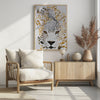 • Etter printing spennes lerretsduken på en kraftig blindramme. For de fleste formatene bruker vi en 40mm tykk ramme, slik at det oppnås en flott dybde-effekt når rammen henges på veggen. Deretter monterer vi på oppheng med stålvaier og kunstverket ditt kan henges rett på vegg.