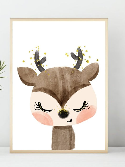 Nydelig håndtegnet plakat av babyhjort til barnerommet.