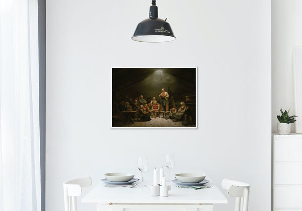 - Etter printing spennes lerretsduken på en kraftig blindramme. For de fleste formatene bruker vi en 40mm tykk ramme, slik at det oppnås en flott dybde-effekt når rammen henges på veggen. Deretter monterer vi på oppheng med stålvaier og kunstverket ditt kan henges rett på vegg.