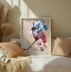 • Etter printing spennes lerretsduken på en kraftig blindramme. For de fleste formatene bruker vi en 40mm tykk ramme, slik at det oppnås en flott dybde-effekt når rammen henges på veggen. Deretter monterer vi på oppheng med stålvaier og kunstverket ditt kan henges rett på vegg.