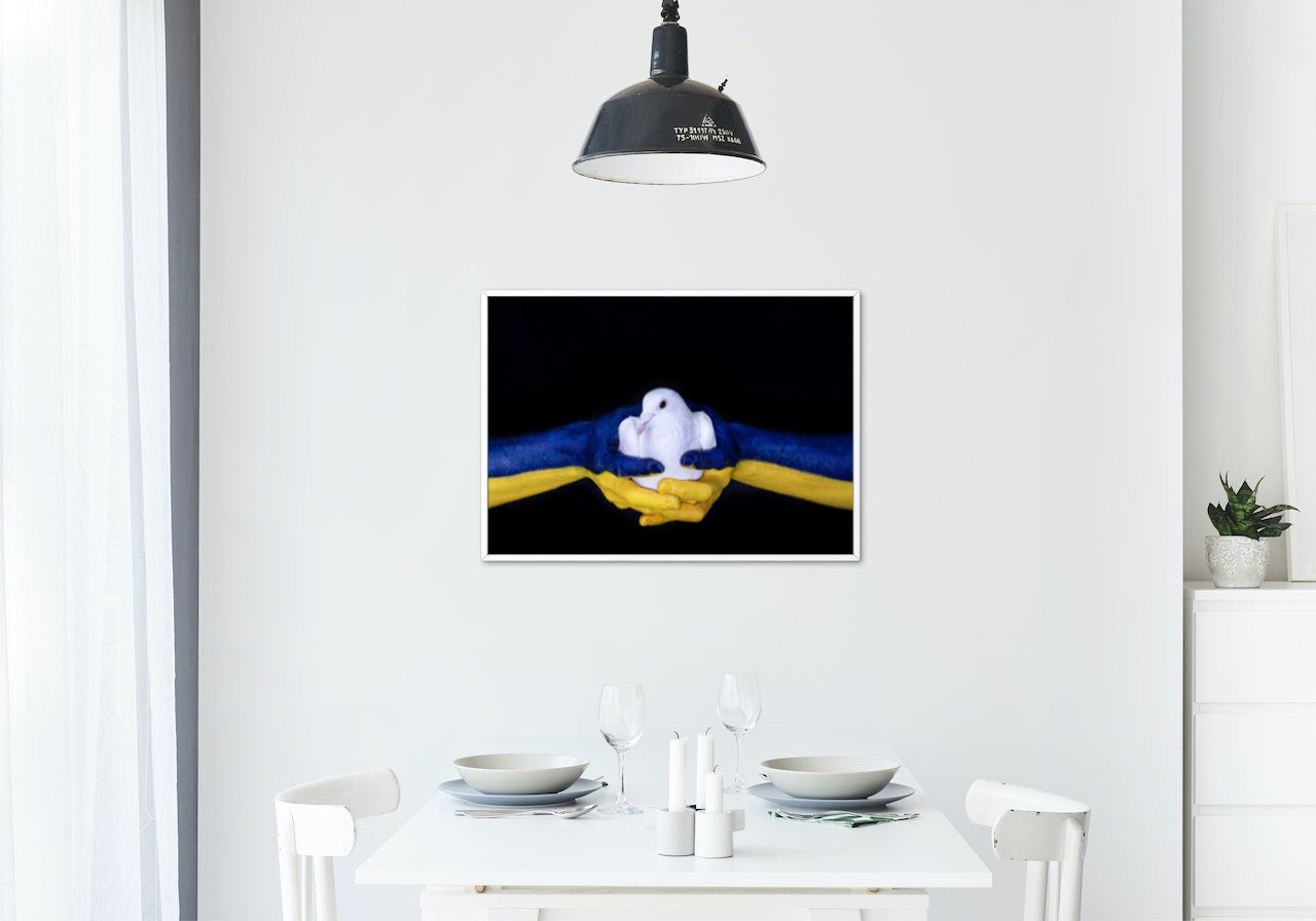 • Etter printing spennes lerretsduken på en kraftig blindramme. For de fleste formatene bruker vi en 40mm tykk ramme, slik at det oppnås en flott dybde-effekt når rammen henges på veggen. Deretter monterer vi på oppheng med stålvaier og kunstverket ditt kan henges rett på vegg.