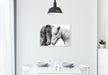 - Etter printing spennes lerretsduken på en kraftig blindramme. For de fleste formatene bruker vi en 40mm tykk ramme, slik at det oppnås en flott dybde-effekt når rammen henges på veggen. Deretter monterer vi på oppheng med stålvaier og kunstverket ditt kan henges rett på vegg.