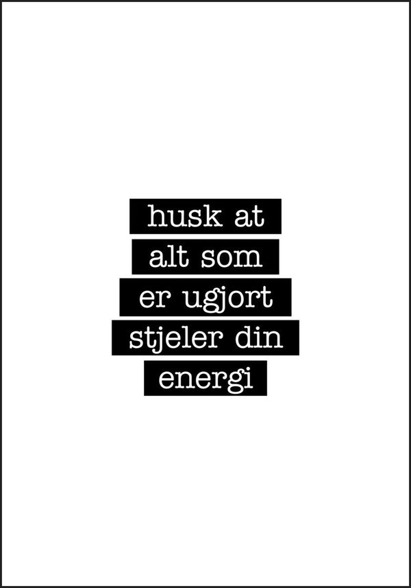 Å fullføre ting som du egentlig skulle utsette, gjør at du blir fylt med energi! Plakaten med teksten "husk at alt som er ugjort stjeler din energi" kan virkelig få fart på livet.