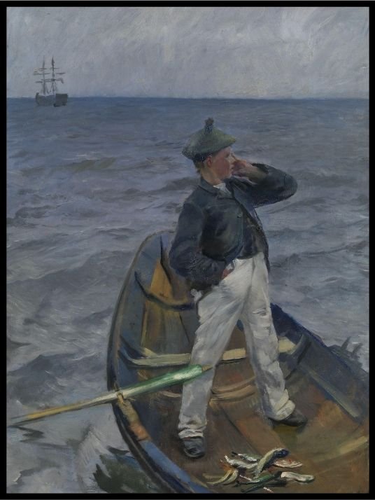 Motiv av Christian Krogh, en kjent norsk maler og forfatter og en av de mest sentrale skikkelsene i norsk kunstliv. Han var gift med malerinnen Oda Krogh. Han ble født i 1852 og døde i 1925.