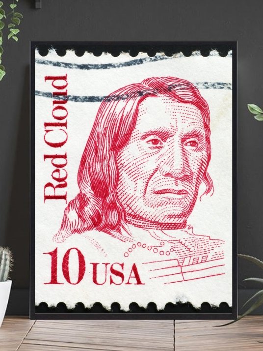 Plakat av indianerhøvdingen Red Cloud, utgitt som frimerke i USA.