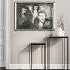 • Etter printing spennes lerretsduken på en kraftig blindramme. For de fleste formatene bruker vi en 40mm tykk ramme, slik at det oppnås en flott dybde-effekt når rammen henges på veggen. Deretter monterer vi på oppheng med stålvaier og kunstverket ditt kan henges rett på vegg.