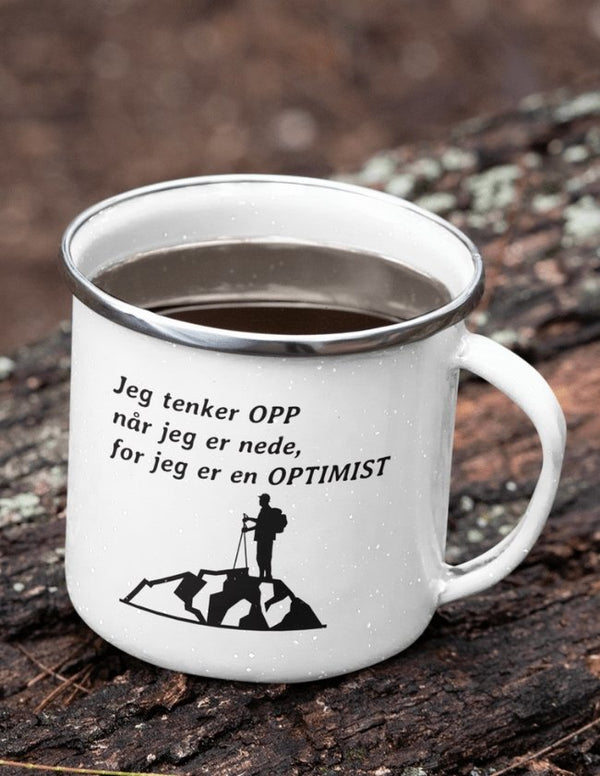 Jeg tenker opp når jeg er nede - Emaljekopp med sølvkant