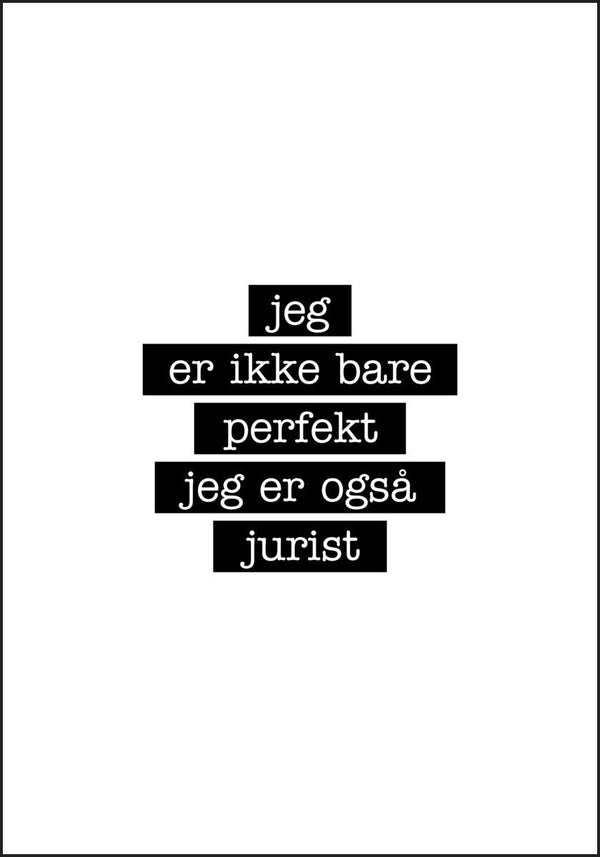 Plakat med teksten: Jeg er ikke bare perfekt jeg er også JURIST :)