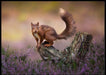 Plakat av et ekorn på en stubbe midt i høstlyngen