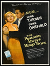 Filmplakat av The Postman Always Rings Twice med Lana Turner og John Garfield.