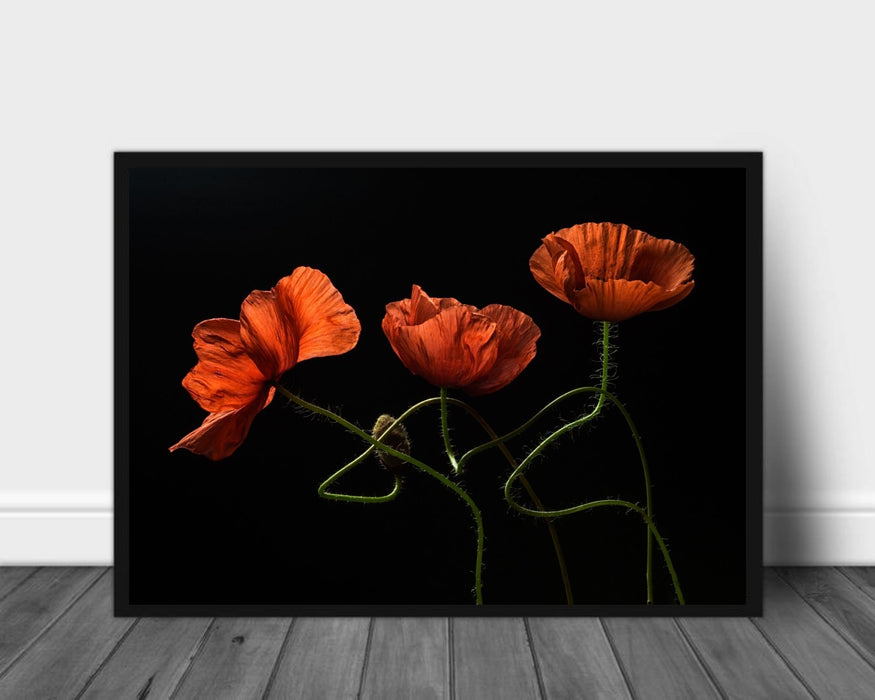 Plakat med bilde av flotte valmuer, sent mot natt.