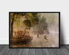 - Etter printing spennes lerretsduken på en kraftig blindramme. For de fleste formatene bruker vi en 40mm tykk ramme, slik at det oppnås en flott dybde-effekt når rammen henges på veggen. Deretter monterer vi på oppheng med stålvaier og kunstverket ditt kan henges rett på vegg.