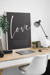 Kristen typografiplakat - LOVE - Korinter 13:4-8