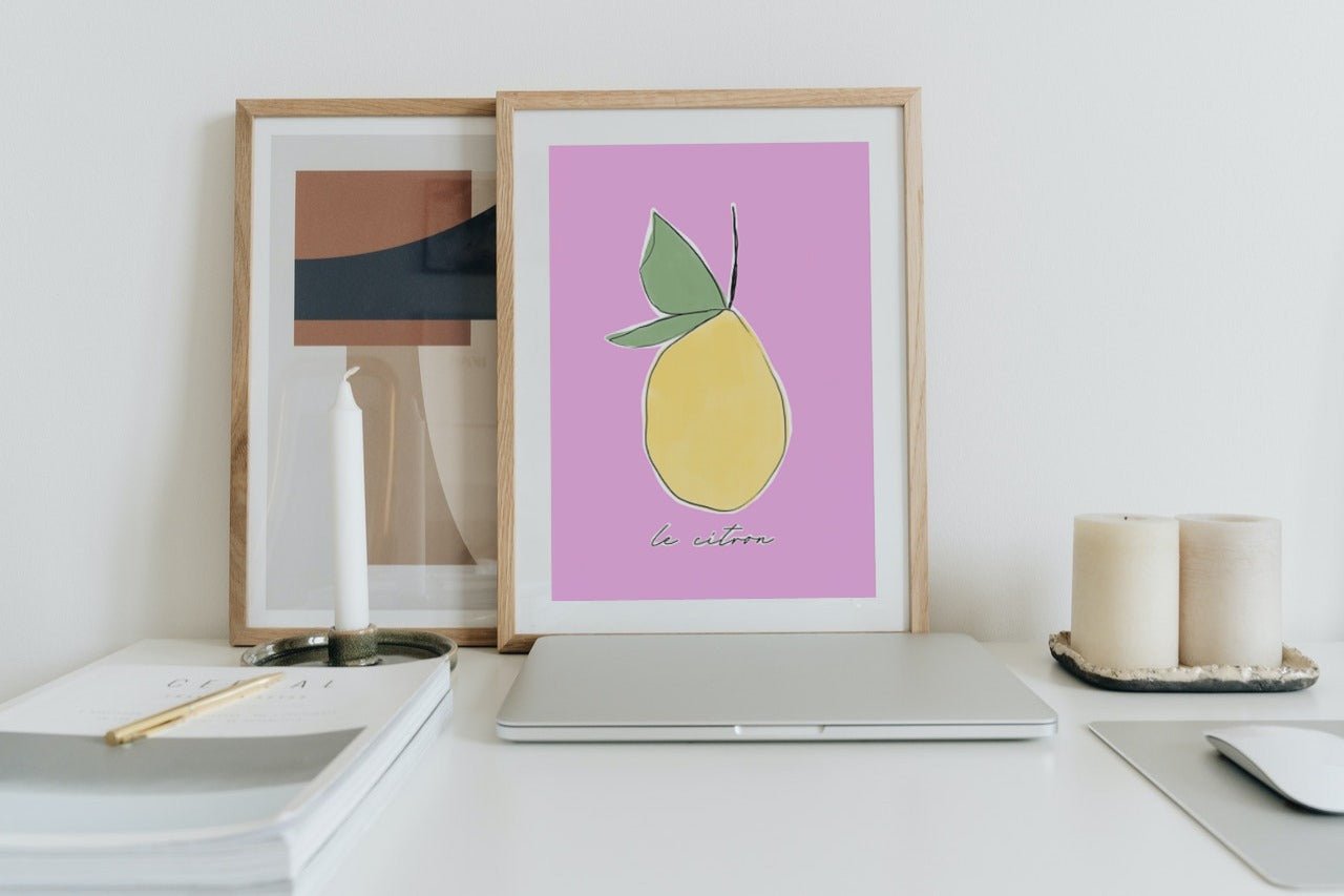 Poster av en sitron. Stilfull kunstplakat til nordiske hjem.
