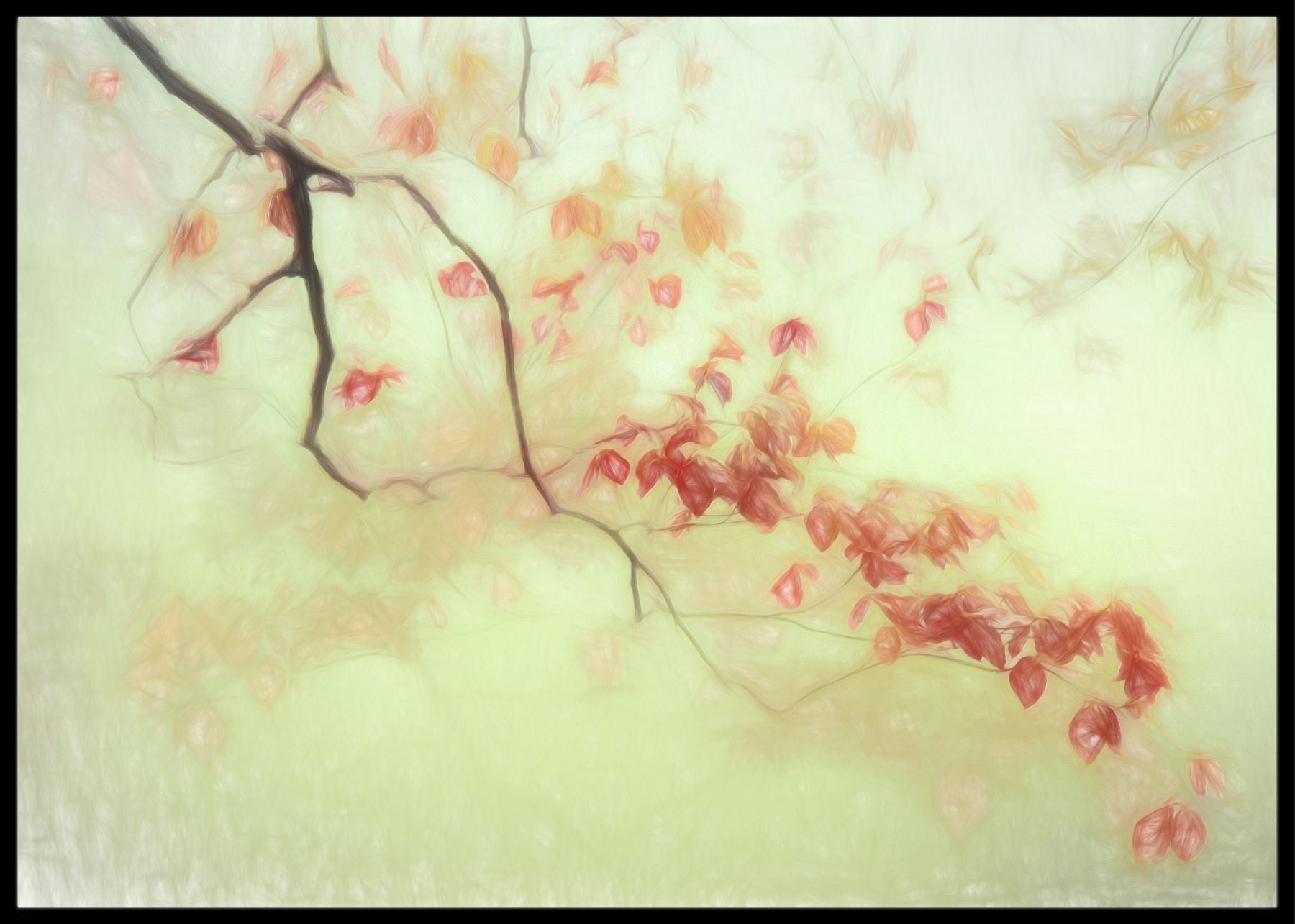 Plakat av en malerisk japansk prydbusk i blomstring.
